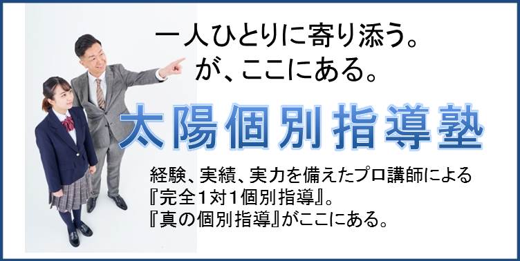 太陽個別指導塾 は、『一人ひとりに寄り添う、がここにある。』をコンセプトに、20年の指導経験を持つベテラン・プロ講師が『完全1対1授業』で、生徒一人ひとりに真剣に向き合って指導しています。